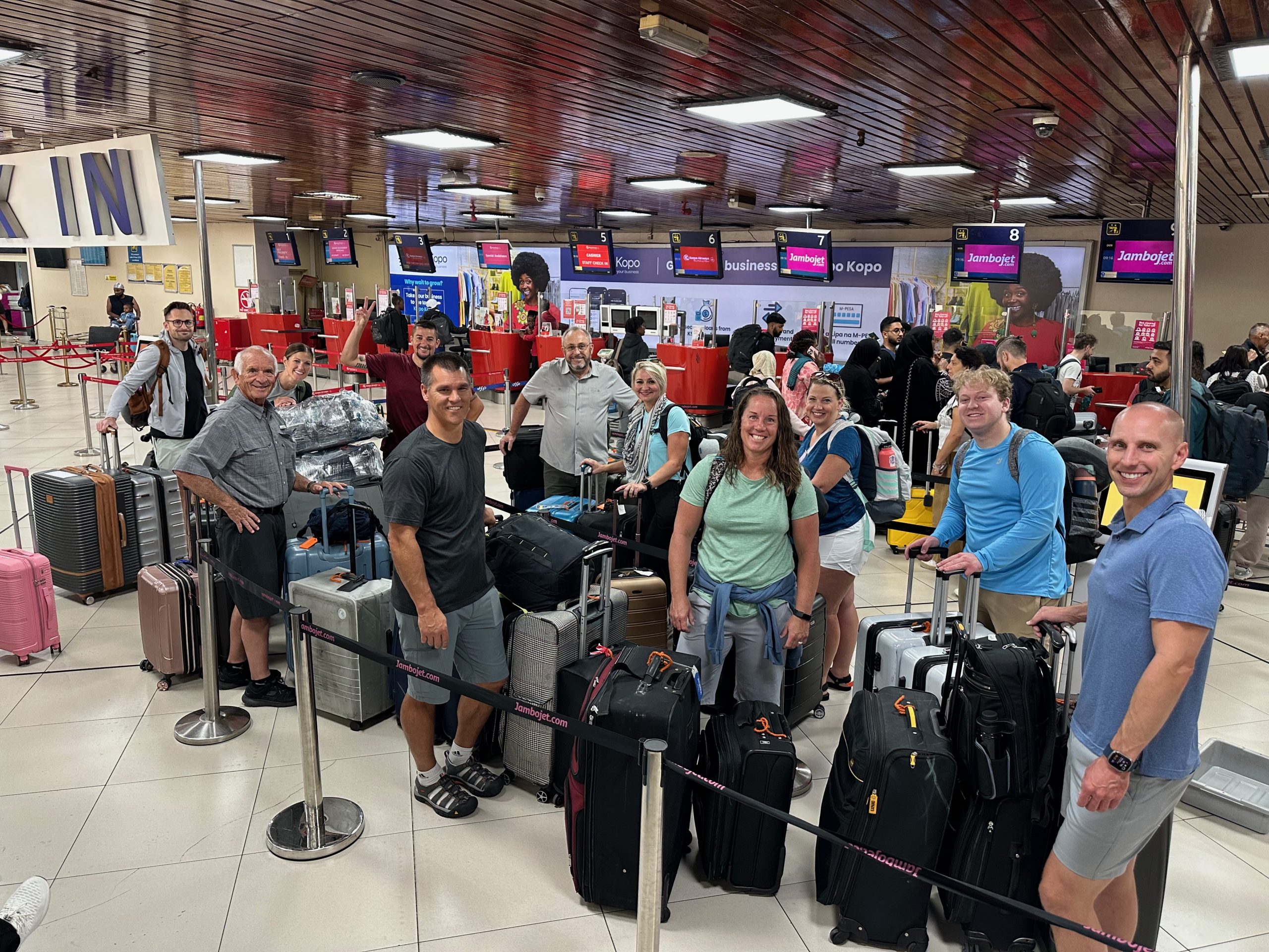 Rhett described our journey perfectly when he said, “the last two days have felt like one long day.” The GV travel team departed on Monday afternoon at 1:00 p.m. mountain daylight time and arrived in Nairobi 26 hours later. Along the way, everyone displayed great attitudes as they each hauled three large suitcases full of medical and school supplies. We are grateful for the generosity of our customers, partners, friends, and family who contributed resources to this year’s project!