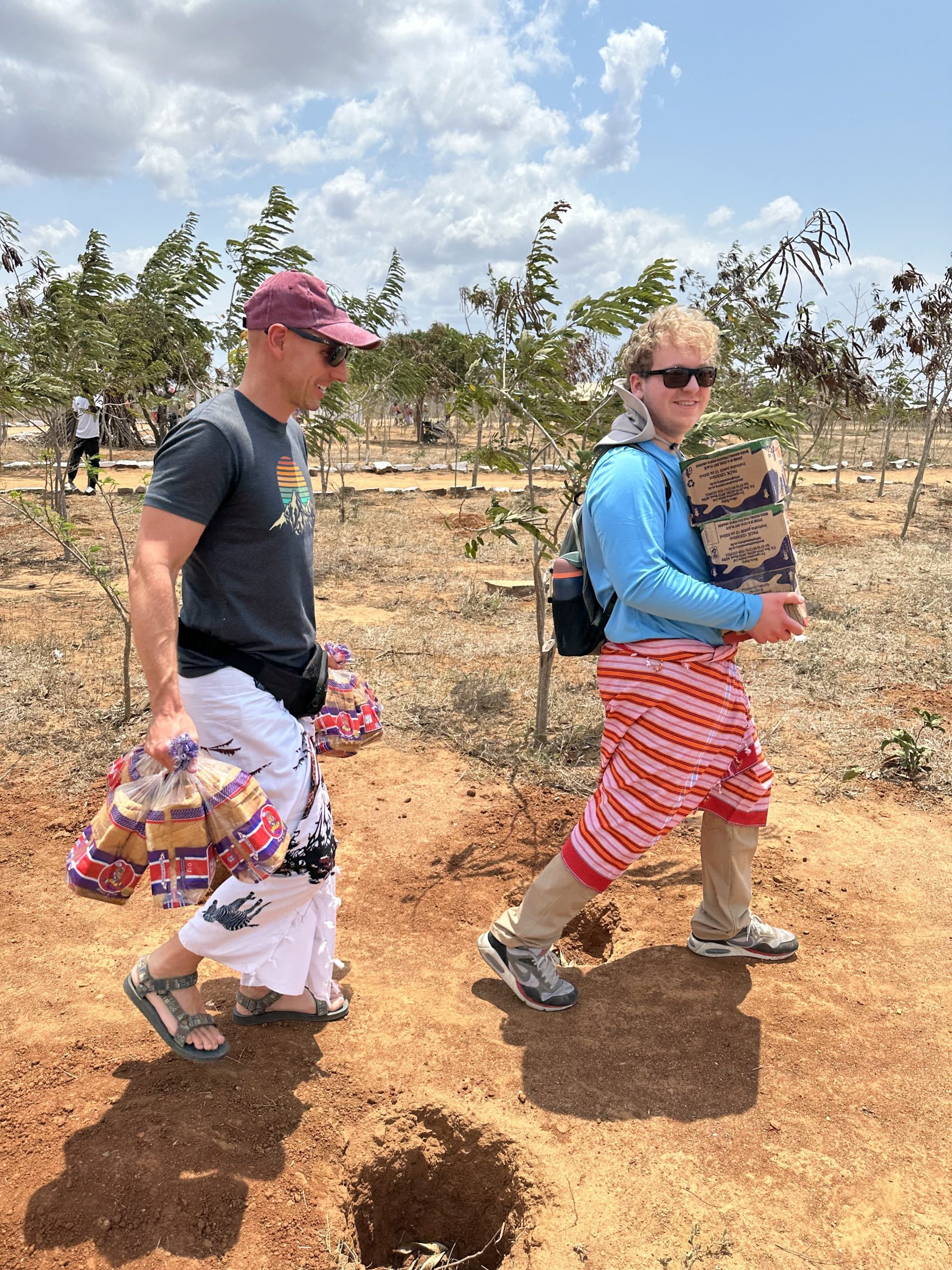 September 5, 2025The need for a new school in Kavunzoni became apparent to us when we saw two large classes of students meeting outside under trees. A sign hanging from the branches indicated what grade gathers there. Our admiration for this community grew as our tour continued to their large vegetable garden, a fishing pond that held tilapia, and the area where they make charcoal to sell. “Shadowing,” or following the villagers on their daily chores, gave us an opportunity to visit the watering hole and grind corn. Our afternoon felt like an interactive field trip mixed with a National Geographic film, leaving us in awe of the physical strength and ingenuity of our Kenyan brother and sisters.